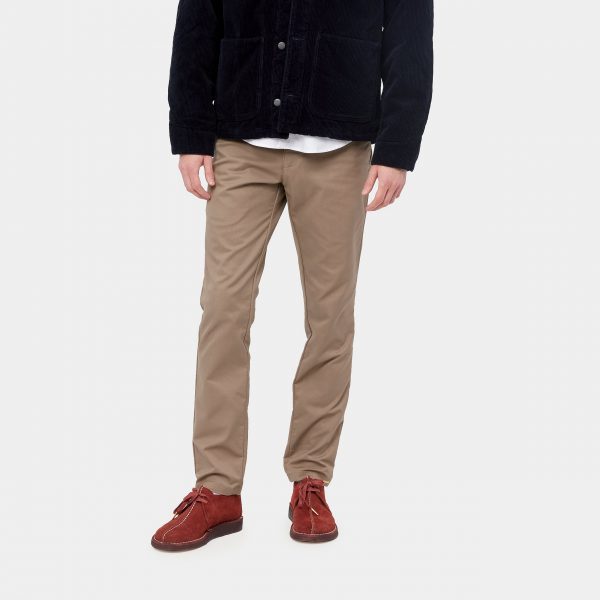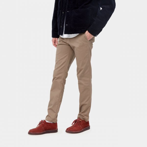 Le Sid Pant est un pantalon chino à la coupe slim en twill de coton mélangé. Confectionné dans un twill extensible, un poly-coton conçu pour le confort et la liberté de mouvement. Il comporte deux poches latérales, des coutures renforcées aux endroits les plus sollicités, deux poches à l’arrière et une étiquette cousue avec le logo « C » de Carhartt.